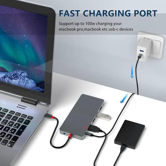 Stable 1000Mbps EthernetUSB to ethernet adapter provides faster data transfers and better security than most Wi-Fi connections; Simply Plug the usb c hub to your laptop and plug in an ethernet cable, you will enjoy an ultra-fast surfing feeling. The USB docking station which is the Ideal solution for unstable Wi-Fi or a failed network card.