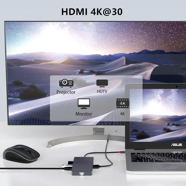 4K USB C to Hdmi Multiport Adapter The HDMI port of this hub supports up to 4K@30Hz, which can perfectly mirror or expand your screen to HDTV, monitor, projector.