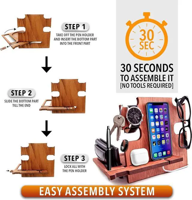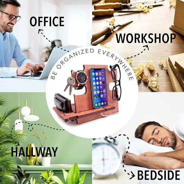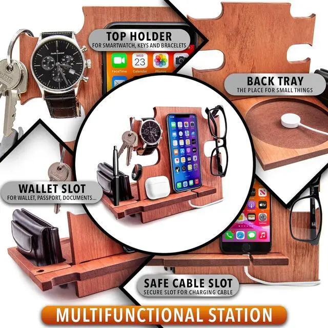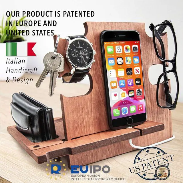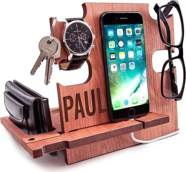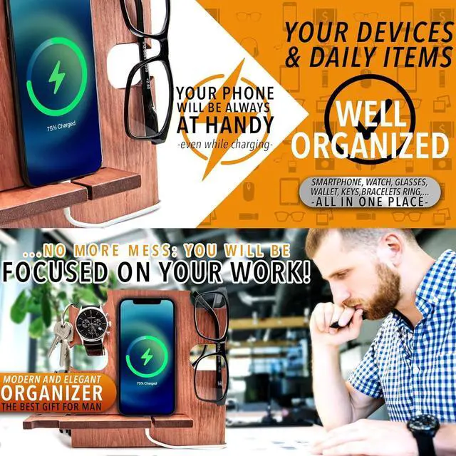 This wooden desk organizer is compatible with all kind of iPhone and android Smartphone. You can use it at home, office or wherever you prefer to keep tidy your personal items. It's also a phone holder and a charging station. A great gift idea for men who have everithing, from wife to her Husband or Fiancè to Boyfriend. A nice present for Dad from his beloved daughter. For Boss, Uncle, Brother, Groomsmen or Friends. Make your special man happy with a special gift that you can personalize with a name or short text that will be engraved on the docking station.