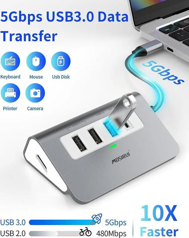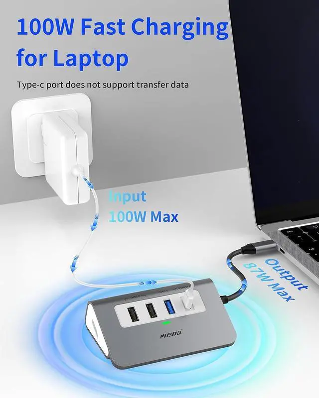 5-IN-1 USB C MULTIPLE HUB TO EXTEND YOUR WORKSPACE: Mosirui USB C Hub for laptops, equipped with 1*4K@30HZ HDMI video output port, 1*100W USB-C power delivery charging port, 1*USB 3.0 port speed up to 5Gbps & 2*USB 2.0 480Mbps for superior data transfer. Triangular design is easier to plug. The mini size is compact and portable. Easy to go everywhere.