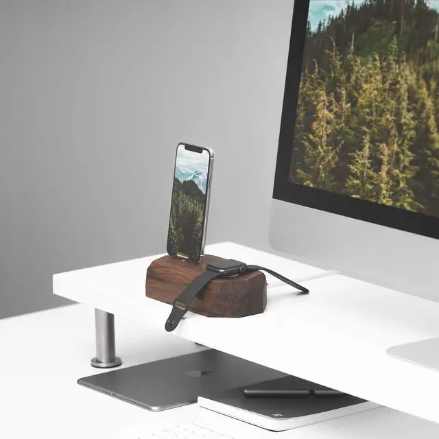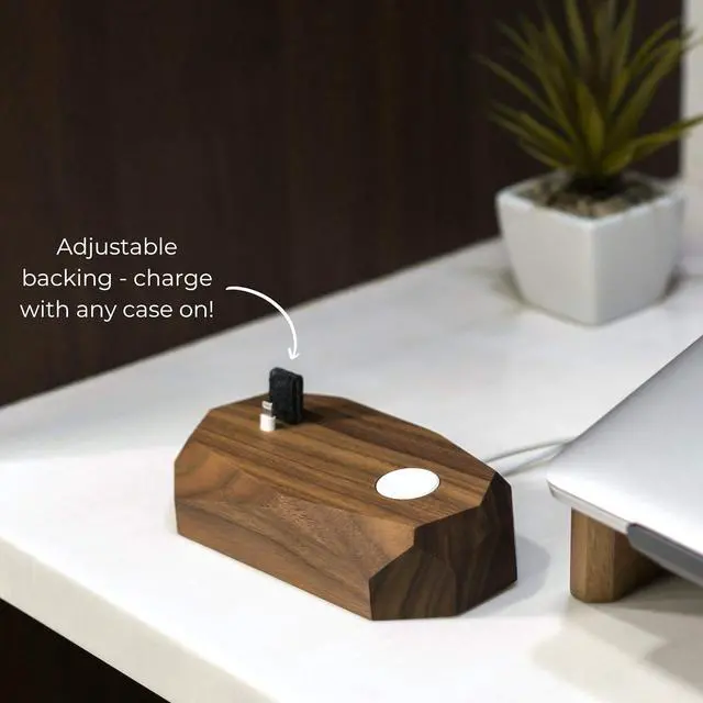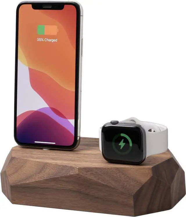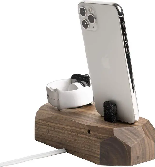 Oakywood wood dock for iPhone allows you to keep on top of your iPhone and Apple Watch at the same time. The iPhone connection uses smart dock technology and an adjustable back support to fit any iPhone, while the magnet hold will keep your Apple Watch in place. It's an incredibly convenient way to keep your devices together and ready when you need them. This stylish dock is a great organic accent on any desk or nightstand. Each dock is handcrafted from gorgeous natural wood, then hand-finished with natural polishes to ensure that the full beauty of the grain can be appreciated. The modern geometric shaping combines with the classic look of the wood to create this stylish accessory. For your convenience, a charging cable is included. The Apple Watch magnetic cable is not included. Oakywood is rooted in the Polish tradition of woodworking and grew to encompass a wide array of wooden accessories for modern technology. Our goal is to provide unique, quality woodcrafts that are friendly for the environment, in a blend of classic and modern styles that combine function and form.