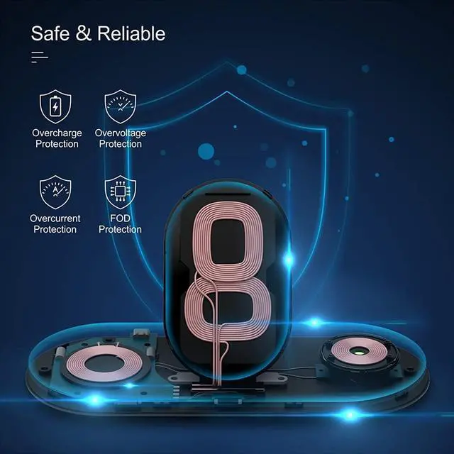 Please use the charging cable and QC3.0 adapter charger in the box(Otherwise, may not be able to charge 3 devices at the same time), do not use a computer or other equipment for wireless charging and power supply.