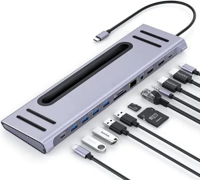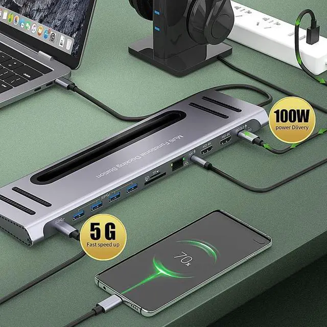 USB C Dual 4K Monitor Universal Laptop Docking Station laptop stand for desk