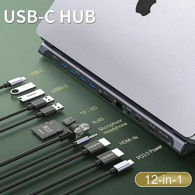 Features Simultaneous use of all ports; HDMI output resolution up to 4k@30Hz Function Charging, data transfer, video output, audio output, ethernet, card reading, external devices