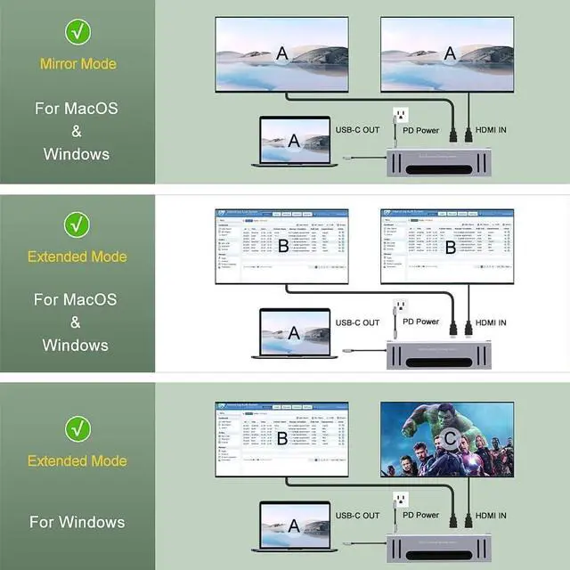 The new USB Type-C connector works seamlessly with this Ultra HD 4K Universal Docking Station. It can connect to type-c laptop. Including the latest drivers for compatibility with Windows 10, 8.1 and 7 or Apple Mac OS,it features two r HDMI outputs for mirroring/extending your Windows desktop to external monitors.