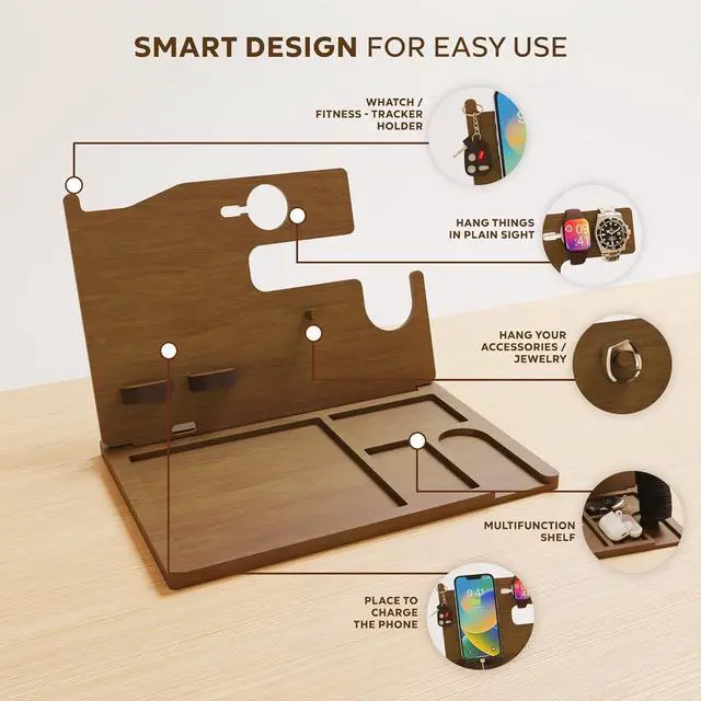 We wanted to bring you an elegantly crafted docking station that would brighten up the look of your décor and help you organize your everyday essentials. This is why we combine a functional design with quality plywood to help you keep your everyday accessories neatly organized and ready to use!