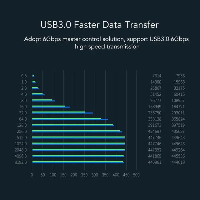 3. 6Gbps Transfer Speed: USB transfer interface meets USB 3.0 standard specifications, supports 6Gbps transfer speed, fast file transfer, 2 USB3.0 expansion ports, expandable such as U disk, card reader, etc.
