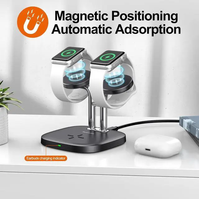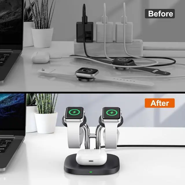4.3 out of 5 starsSwanScout Dual Watch Charger Stand for Apple Watch, 3 in 1 Wireless Charging Station Stand Compatible with Apple Watch Ultra 2/9/8/7/6/5/3/2/SE, Wireless Charger Dock for Airpods Pro 2/3/2 (Black)