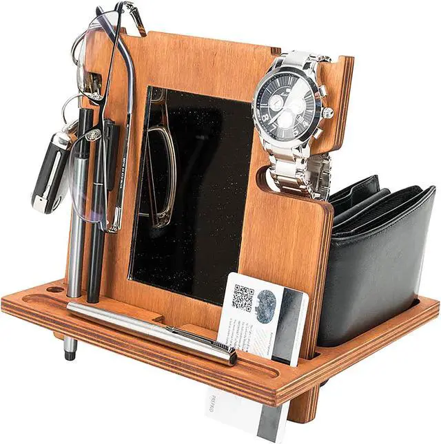 Be it a home office, bedside table or even an office desk, an organized workspace is as enviable as the flashiest car. Transform the workstation and room of that special man in your life by gifting them this mens wooden docking station and smartphone holder with built in mirror.