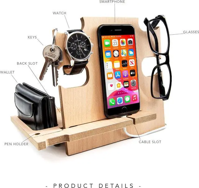 -This docking station is a great solution to keep all your daily items organized and easy to find. It was designed to keep your smartphone, your tablet, keys, watch, glasses, wallet, everything is organized in a series of spaces specifically designed.