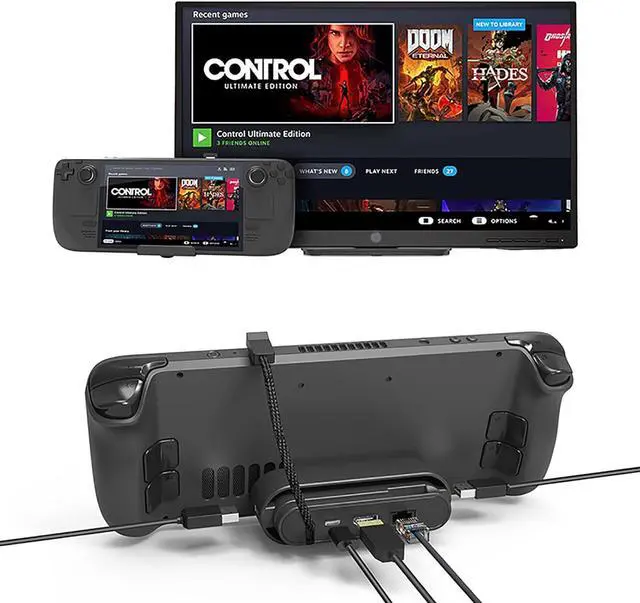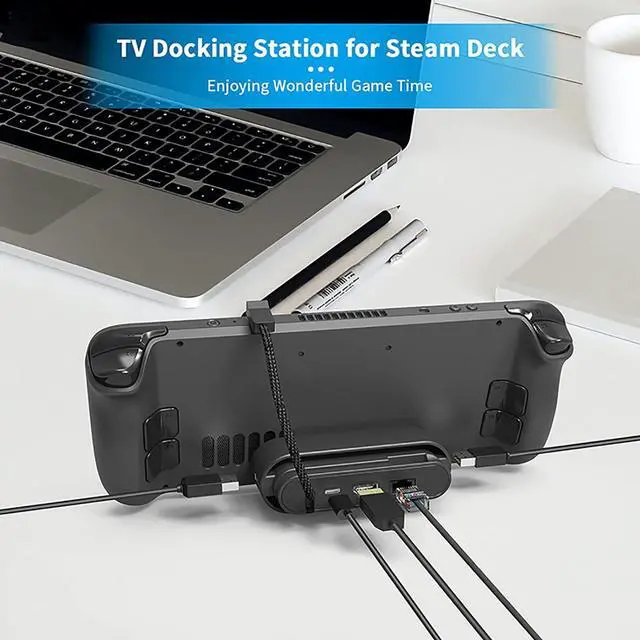 This is a Steam Deck TV docking station that connects Steam Deck to your TV in 1 second at high speed so you can have a great gaming time with the big screen. Perfect for family and friend gatherings, company reunion events, etc.