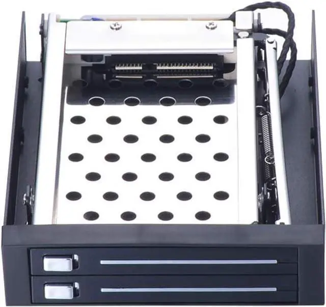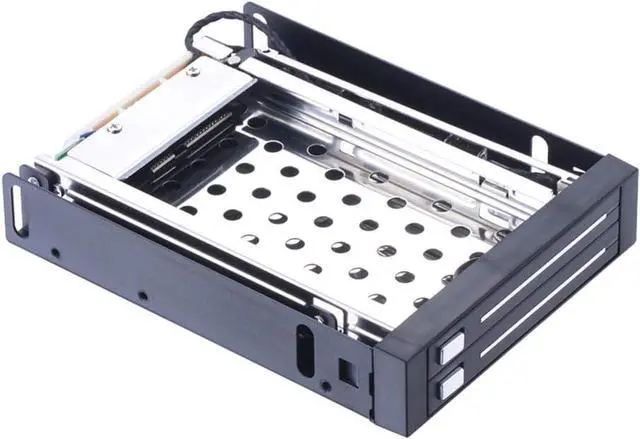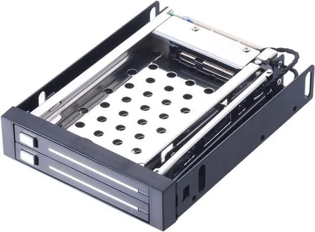 This 2 bays internal SATA mobile rack supports all SATA/SAS 2.5 inches HDD and SSD. No drivers or software required, supports hot swap, plug and play.