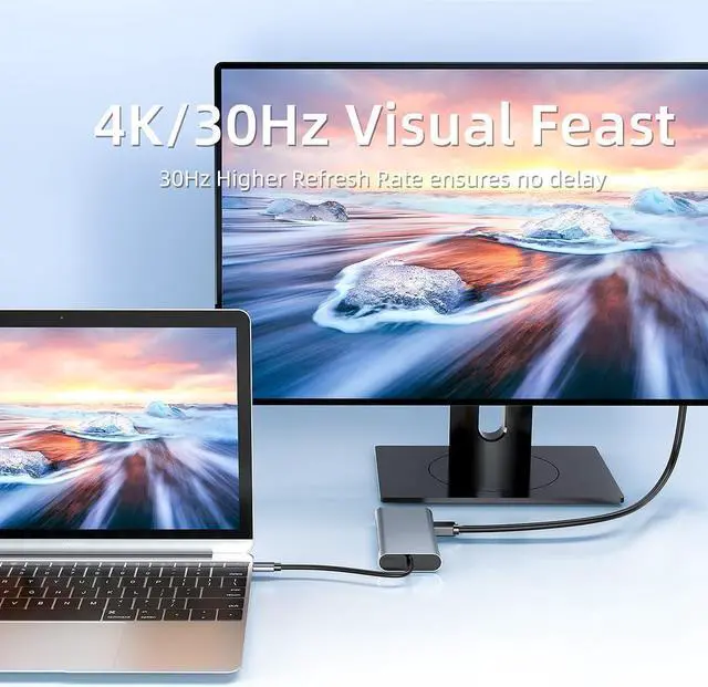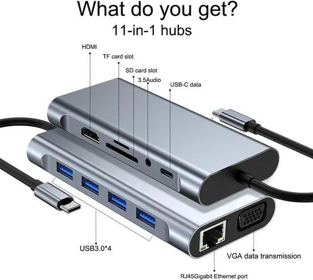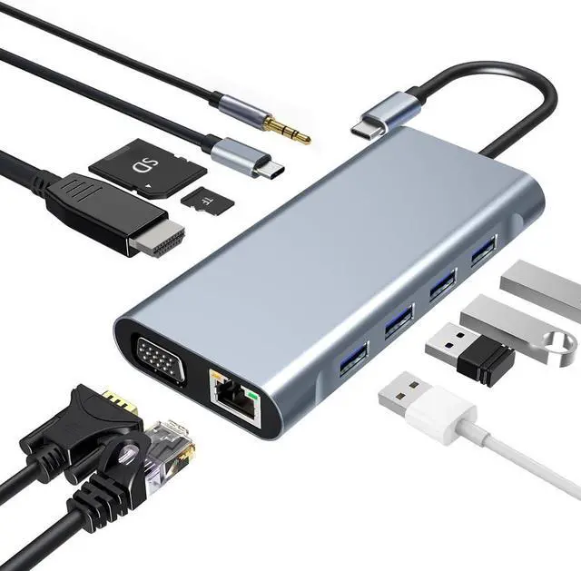 USB C hub multiport adapter:HDMI + VGA interface,connection with TV,projector,monitor and other large-screen devices,which are more convenient for office work.
