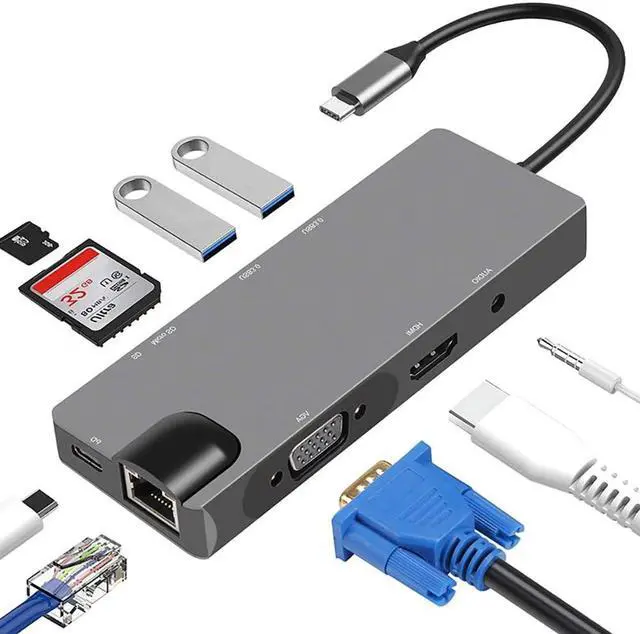 The HDMI and VGA port can be used at same time, but ONLY support duplicating the screens and outputting the same contents.