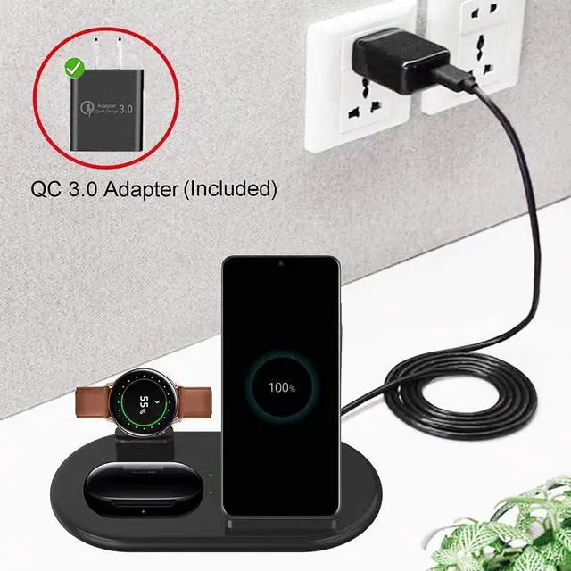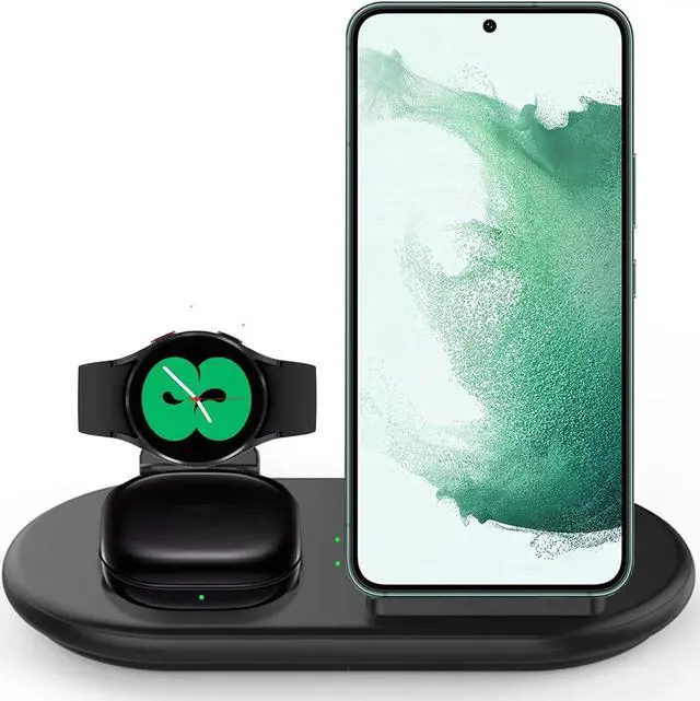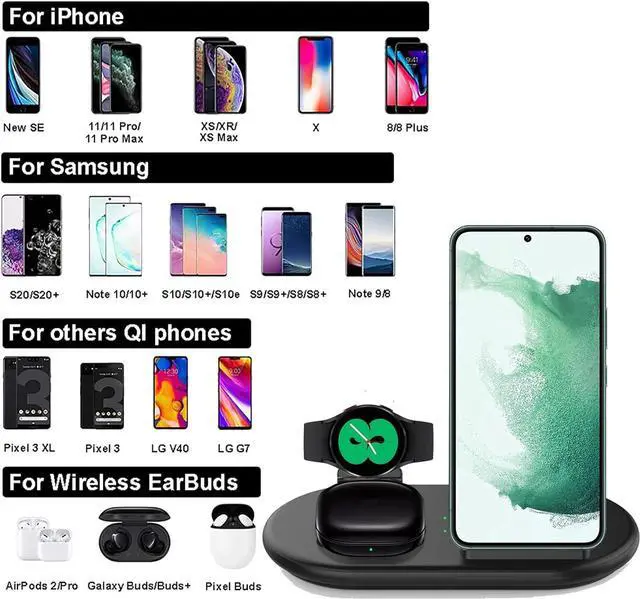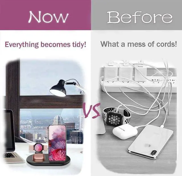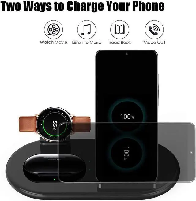 3. It can charger your Phone, Samsung Watch, earbuds simultaneously. No need to plug all the devices with cables, saving your space on your desk and simplify your life.