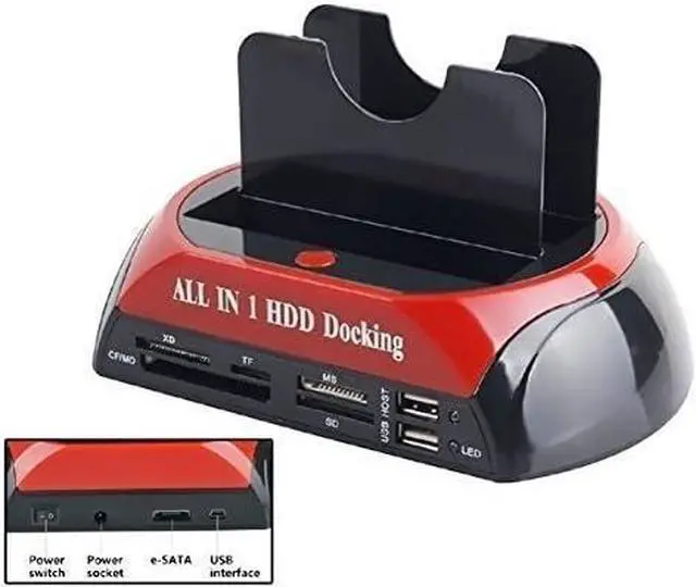 Feature: 1.Brand New and High Quality 2.Support hot plug & can disassemble the hard disk without any tools 3.One Touch Backup Function(on USB Port Only) 4.Power LED Indicator 5.Offline support for hard disk cloning/copy, when it do not connect the computer hard disk can be realized as clone/copy Function: Directly exchange data between 2 different types of HDDs(SATA and IDE), even for different size(3.5" and 2.5") of HDD. You can copy or back up your files conveniently. No need buy 2 or more external cases. Specification: 1.HDD Compatible: All 2.5'' / 3.5'' SATA HDD and 2.5'' / 3.5'' IDE HDD 2.Support Windows: for Win 98 / for 98SE/for ME/for Win2000/for XP/for VISTA/for Win 7/for OS 9.X, or higher 3.Dimension: 180*110*102mm 4.Net Weight: 244g 5.Gross Weight: 490g 6.US Plug Power: Input: 100-240V, 50/60Hz, 1.0A Output:12.0V - 2000mA 5.0V - 3500mA Output Interface: USB2.0 1 2.5'' / 3.5'' IDE Port. 1 e - SATA Port 1 / 2 SATA Ports Package Included: 1 x HDD Docking Station 1 x USB Cable 1 x Driver's CD 1 x US AC Adapter 1 x English User's Manual