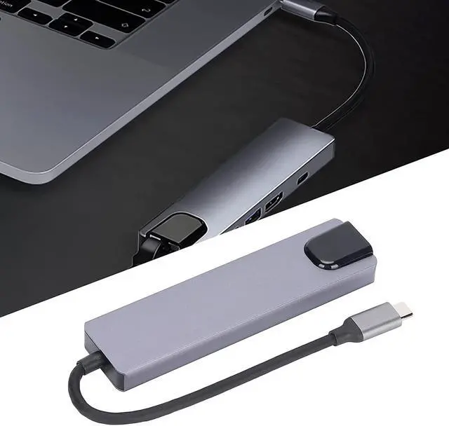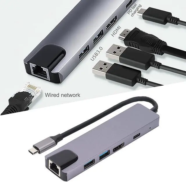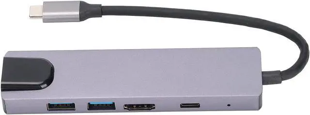 2. No driver or software is required, plug and play. Convert your usbc port into 5 ports: 2 x TypeC, 2 x USB2.0, HighDefinition Multimedia Interface, RJ45, Memory Card, Storage Card