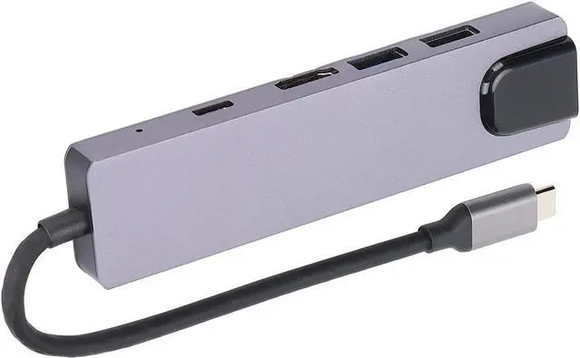 2. No driver or software is required, plug and play. Convert your usbc port into 5 ports: 2 x TypeC, 2 x USB2.0, HighDefinition Multimedia Interface, RJ45, Memory Card, Storage Card