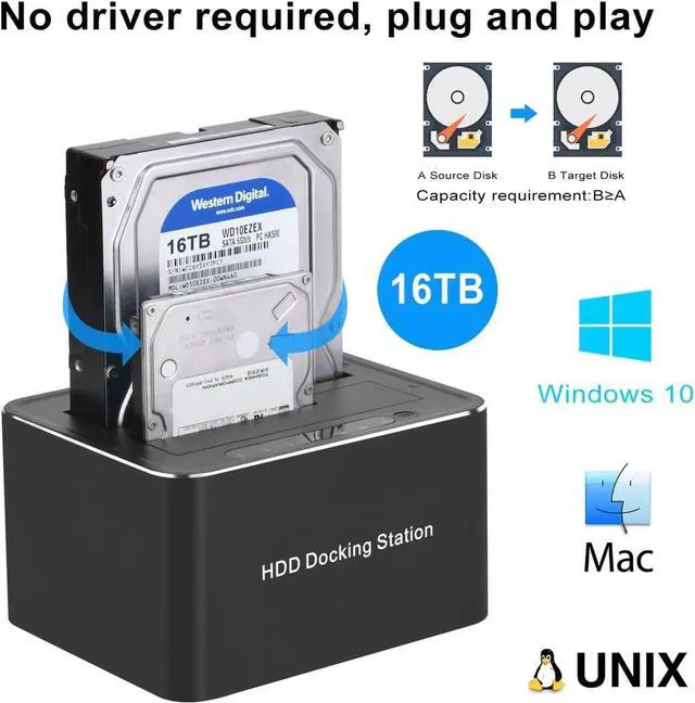 External hard drive docking station adopts a sturdy, shock and vibration resistant aluminum shell.