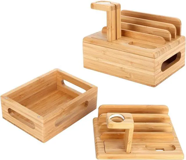 SIMPLE TO ASSEMBLE & CLEANNo Tool Need! This bamboo charging station is easy to set up in 1 minute. The bamboo Charging dock stand is waterproof and mildewproof, just wipe it with a damp cloth.