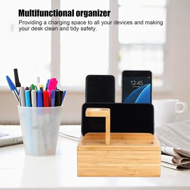 ONE-IN-ALL CHARGER ORGANIZER Our product is compatible with most smartphones &Tablet; bamboo charging station dock is a product for those who hate cluttered electronic devices and clumps of wires, keeps your home and family organized