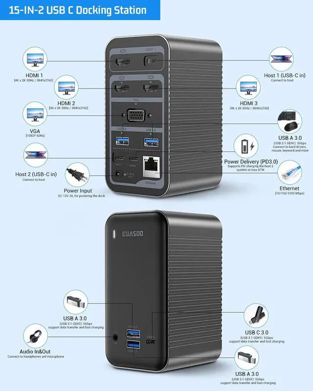 Next page of related Sponsored Products EUASOO 15 in 2 Upgraded Universal Docking Station All-in-one Solution 87W USB-C PD Charging 1000Mbps Gigabit RJ45 Ethernet Fast Charging & 5Gbps Data Transmission