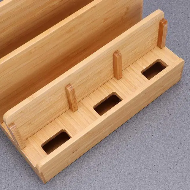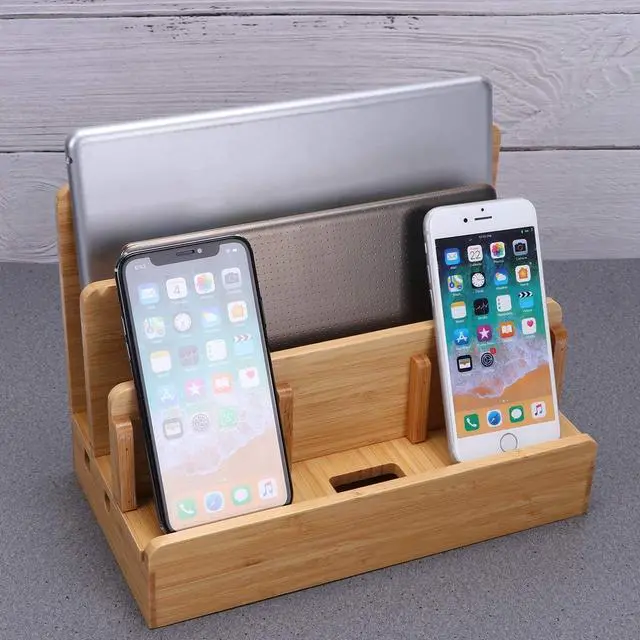 Multifunctional Bamboo Charging Station Docking Organizer Cellphone Holder for Smartphones Multiple Devices Tablets