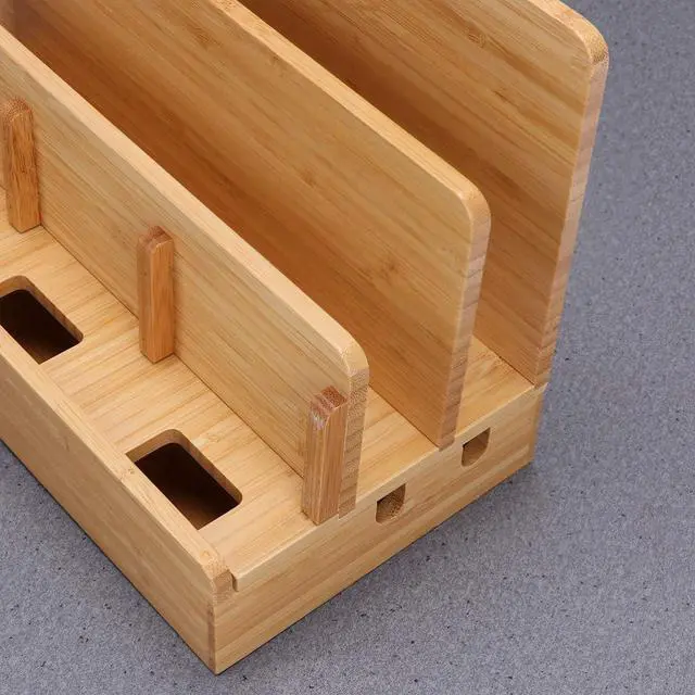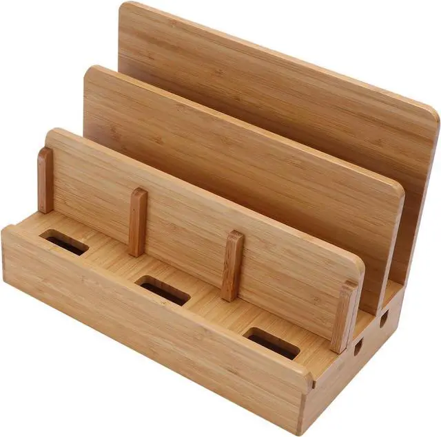 This bamboo charging dock keeps everything in one place, makes your desk nice and clean.