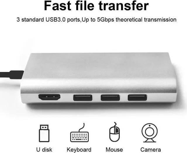 1. With 3 standard USB3.0 interfaces, the hub's theoretical transmission can be up to 5Gbps