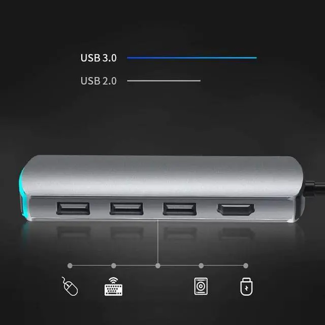 Charging: PD fast chargeUSB-C to HDMI + Memory + Memory + 3.5mm Audio + 3 x USB3.0 + PD