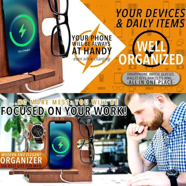 - This docking station is a nice gift idea for Christmas, Anniversary or Birthday for your Husband, Boyfriend, Boss or co-worker, dad on Father's Day and many other occasions. It is a desk organizer compatible with all major smartphones including the new iPhone 11, 11 Pro and Max, iPhone X, iPhone XR, Plus and all kind of iPhones. Samsung, Huawei, LG, HTC, Nokia and all Android phones. Moreover it's compatible with iPad and others tablet.