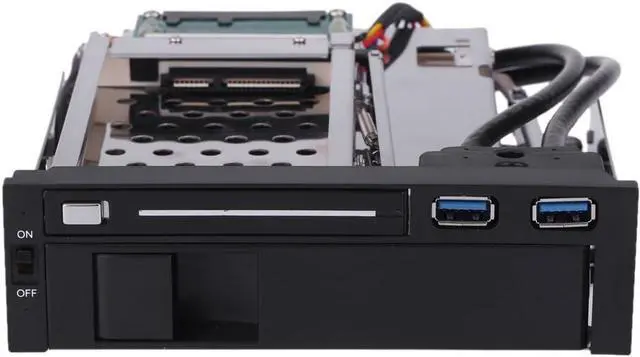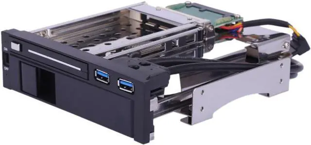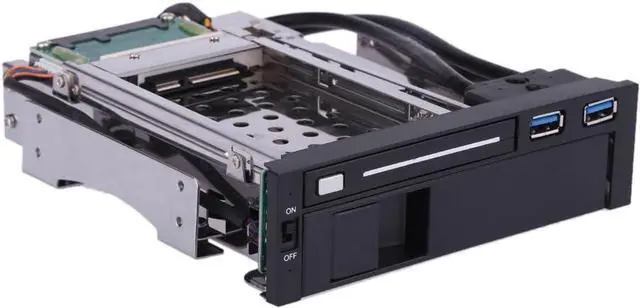 This 2-bay internal SATA mobile rack provides a 2.5" SSD/HDD bay and a 3.5" HDD bay for 5.25" drive bay. No drivers or software required, supports hot swap, plug and play. Specially design 2 USB 3.0 port and ON/OFF power switch controlling both 2.5" and 3.5" drive.