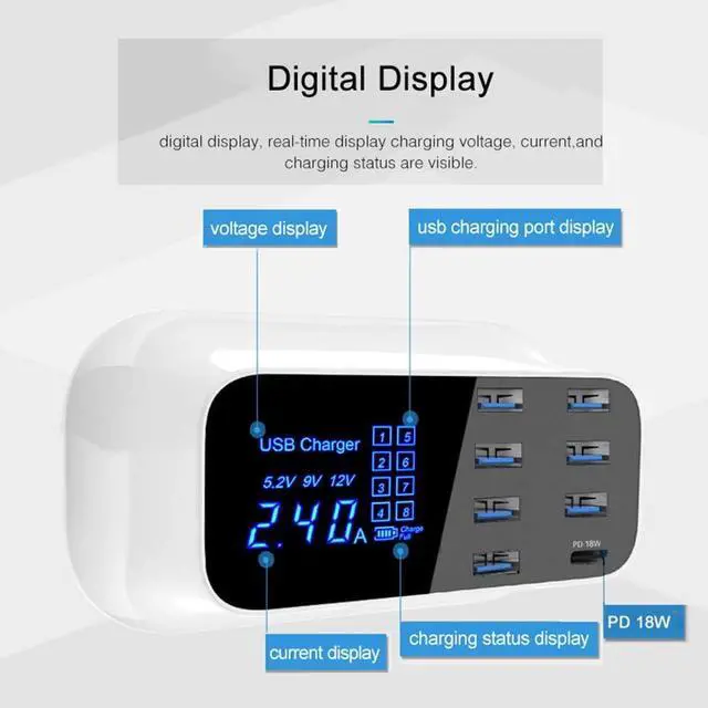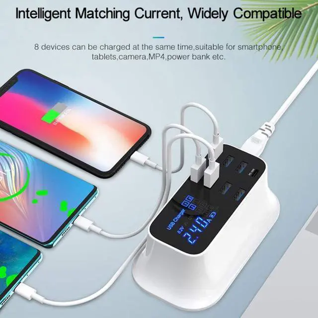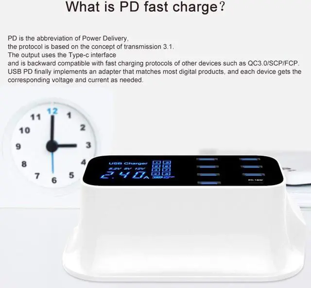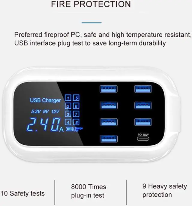 1PD port charger and 7 common USB ports with Smart IC - allowing you to charge up to 8 devices simultaneously.