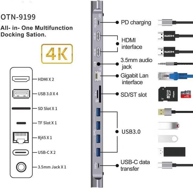 *Support HDMI Female, Mini DisplayPort Female, VGA Female, USB-C Female, USB 3.0 Female, Gigabit Ethernet, Stereo, SD Card, Micro DS Card, USB-C interface