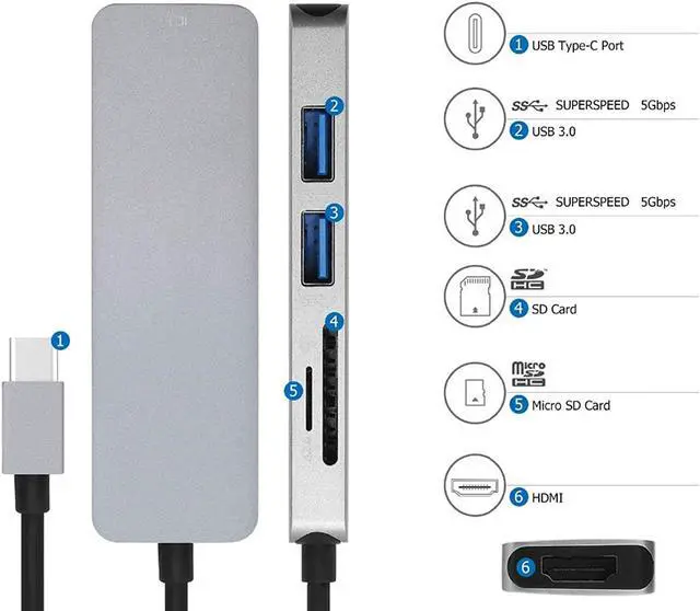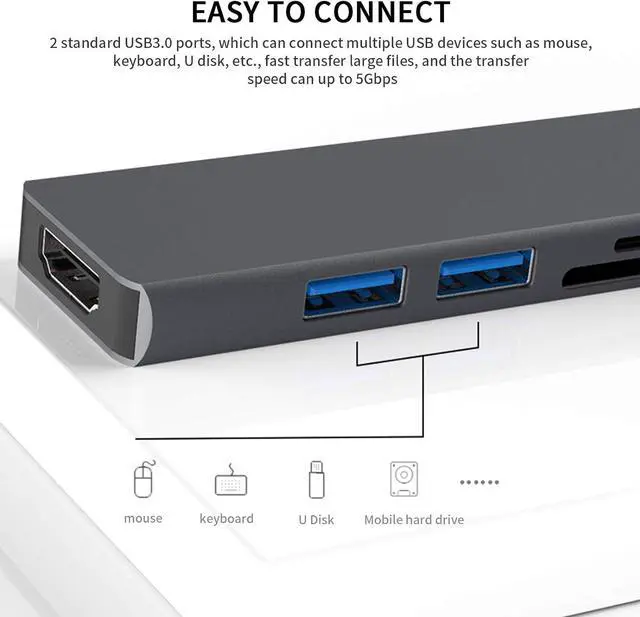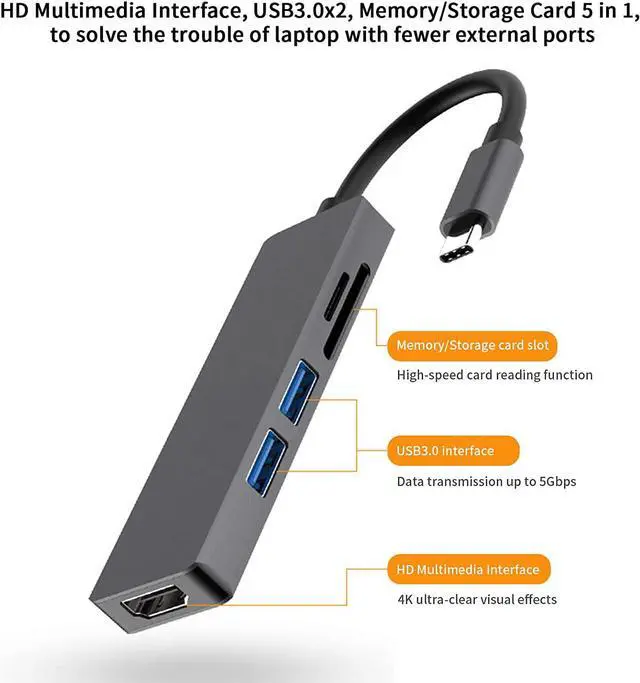 4. HD Multimedia Interface, USB3.0x2, Memory/Storage Card 5 in 1, to solve the trouble of laptop with fewer external ports.