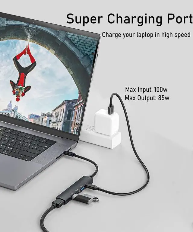 2.The 100W PD TYPE-C port is design for charging only. Does not support data transmission. Maximum input is 100W while the maximum output is 85W. 15W supports the hub itself.