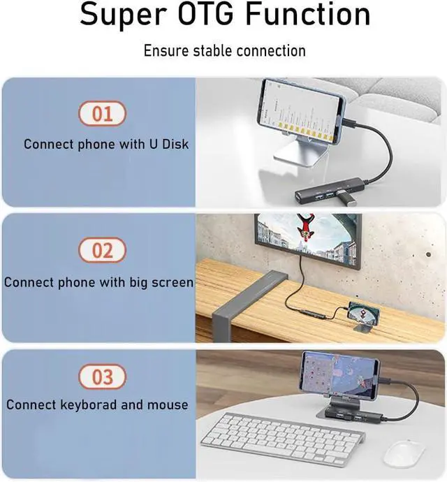 3.All functions of the USB C Hub can only function perfectly if the USB-C port of your laptop supports data transfer, power supply and video output(Display Port); If your laptop USB-C port only supports one of these functions, the hub only supports the corresponding functions.