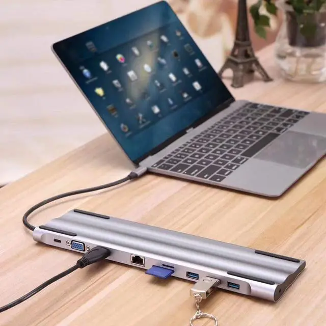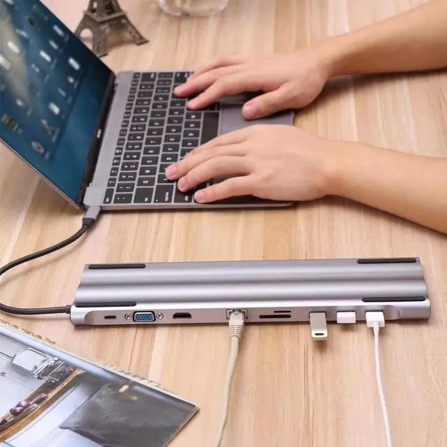 USB Type C Hub 10 in 1 USB C Laptop Docking Station Multi-function Massive Expansion for USB-C Laptops All in one Hub