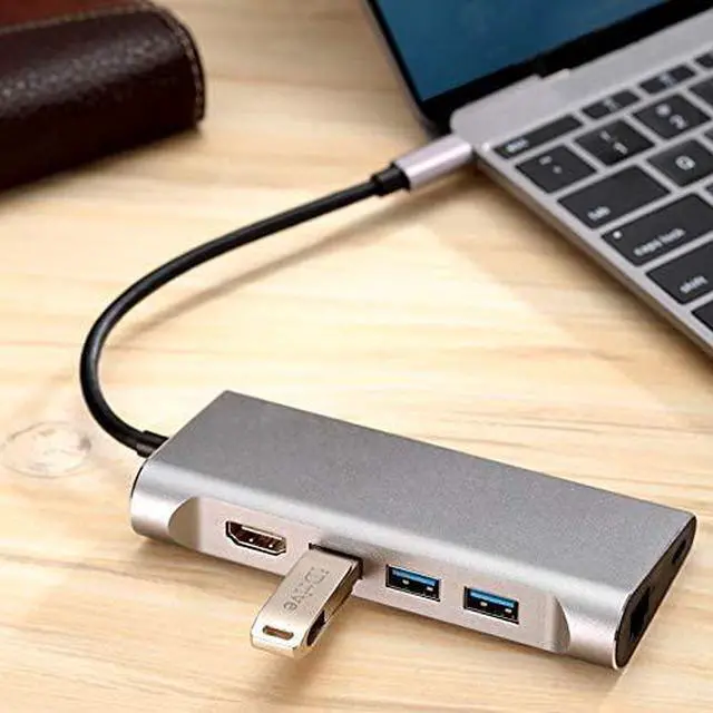 6-in-1 USB 3.1 hub type-C to USB 3.0 * 3 + HDMI 4K + RJ45 + PD multi-functional HD docking station for MacBook PC millet tablet