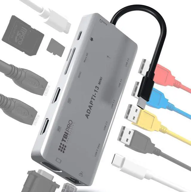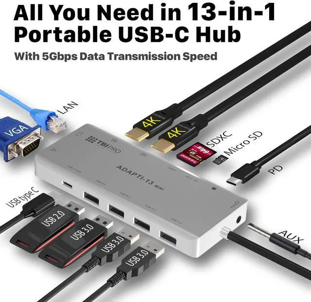 13-IN1 USB C Hub Precision milled aluminum 13 in1 USB C hub comes with all ports you need for work.