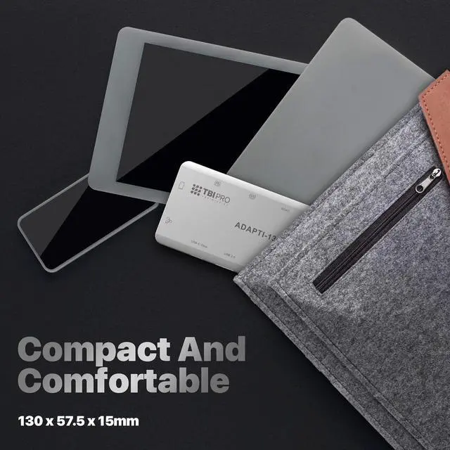 Portable 13-in-1 Anti-Overheat USB-C Hub. Compact lightweight hub weighing only 120 g with protection against overheat, overcurrent, short circuit, and overcharge is designed to expand your work opportunities and provide smart reliable performance: just plug and go, no drivers, software and complex installation required. This USB hub applies to all Type-C devices.