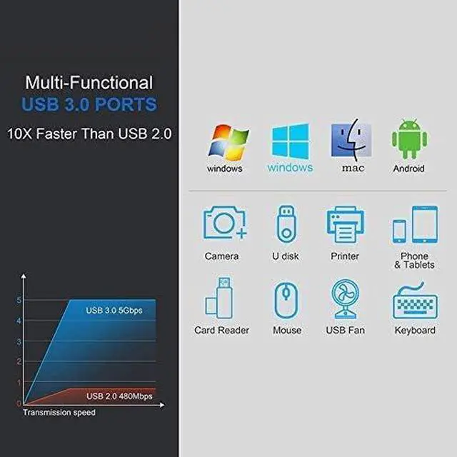 5. Standard USB 3.0 interface, plug and play, high-speed transmission, high compatibility, can be connected to U disk, mouse, keyboard, mobile hard disk and other equipment.