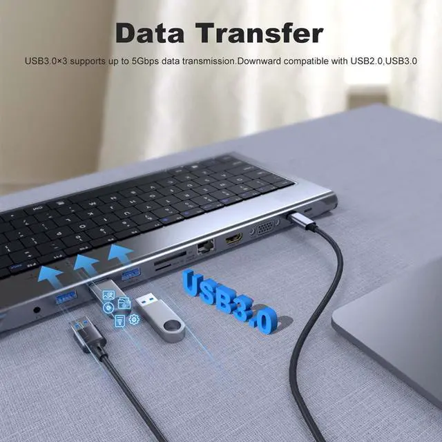 1.USB-A 3.0 Ports: 5Gbps Data Transfer & BC1.2 Charging (5V0.9A)