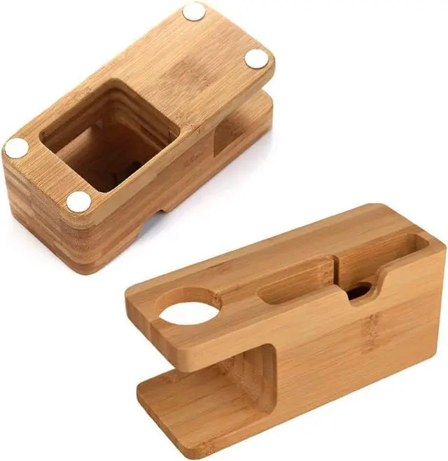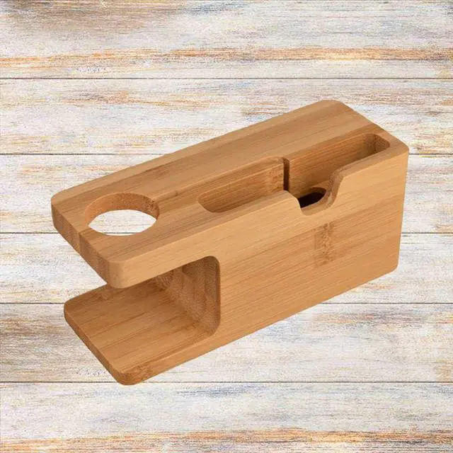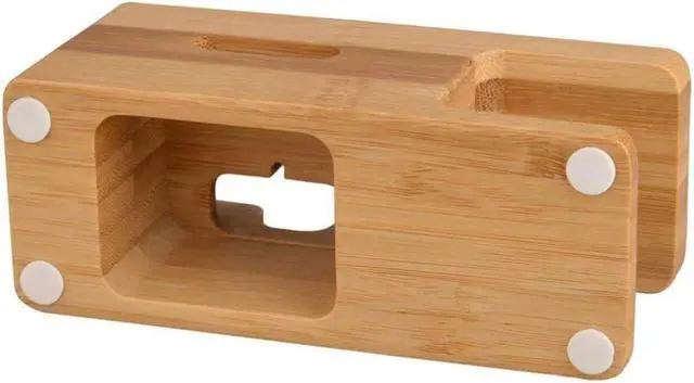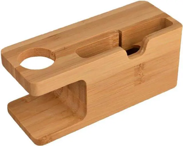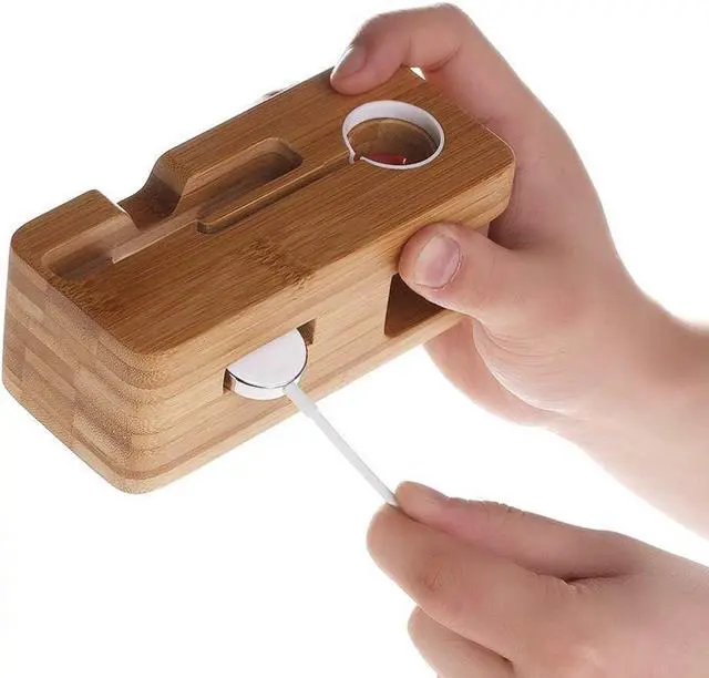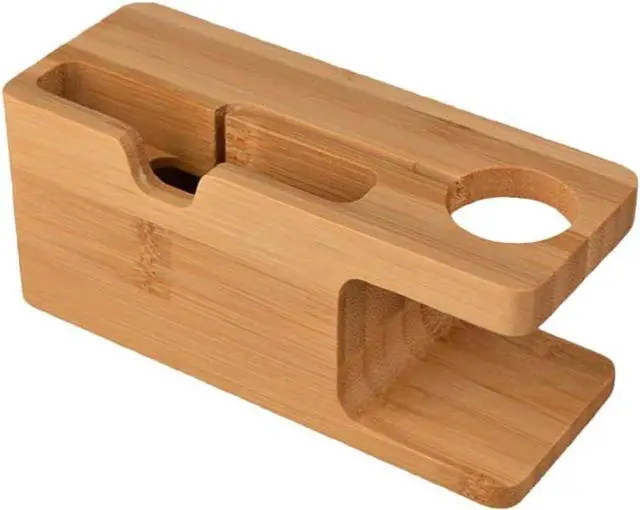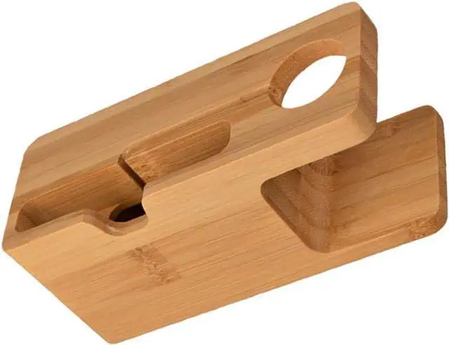 Compatible with most phones and watch, and gives your device a safe dock while charging. Made of bamboo, no odor smell, but elegant., durable and environmentally- friendly. Reasonable design protects your device from scratches and sliding, and charging cable organizing for no tangled mess.