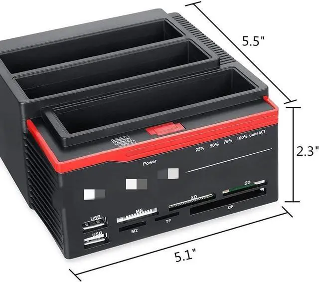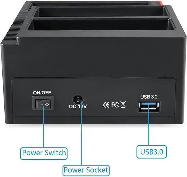 All in 1 dual bay docking station allows an easy accessing with two 2.5 inch & 3.5 inch SATA I II HDD SSD, dual 6TB hard drive with USB 3.0 hub, backward with USB 2.0/1.1.