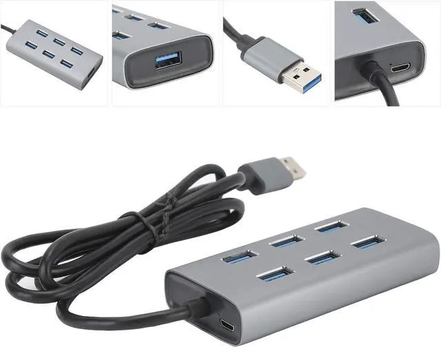 1. 7 ports, USB 3.0 transfer rate up to 5Gbps, backward compatible with USB 2.0, with more stable transfer performance and work efficiency.