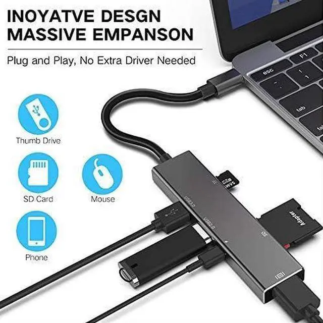 Type-C to HDMI/USB 3.0/USB 2.0/Type-C//TF ;