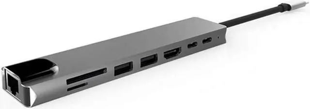 8 in 1 USB-C HUB 4K/30HZ: 1 x HDMI+2 x USB+1 x PD+1 x USB C+1 x +1 x TF+1 x RJ45