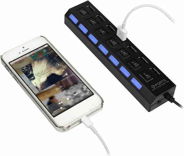 Designed with 7 ports, this compact USB 2.0 high-speed hub is small enough for travel, and capable enough to meet your connectivity needs.