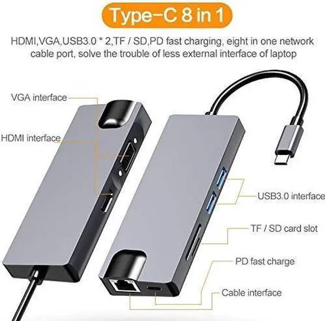 3. Support HDMI / VGA interface, support simultaneous use of HDMI / USB HUB / card reader and charging port